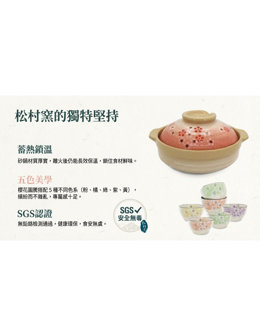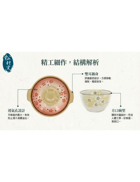 一.品 名:松村窯6方口碗+7.5吋砂鍋-紅梅(盒裝)