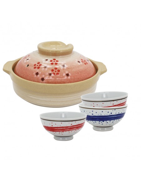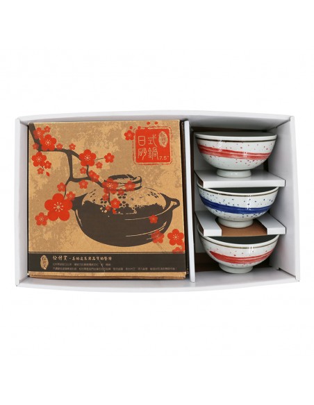 一.品 名:3手繪雲彩碗+7.5吋砂鍋-紅梅 (盒裝)