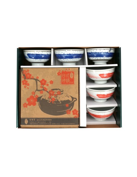 一.品 名:6手繪雲彩碗+7.5吋砂鍋-紅梅 (盒裝)