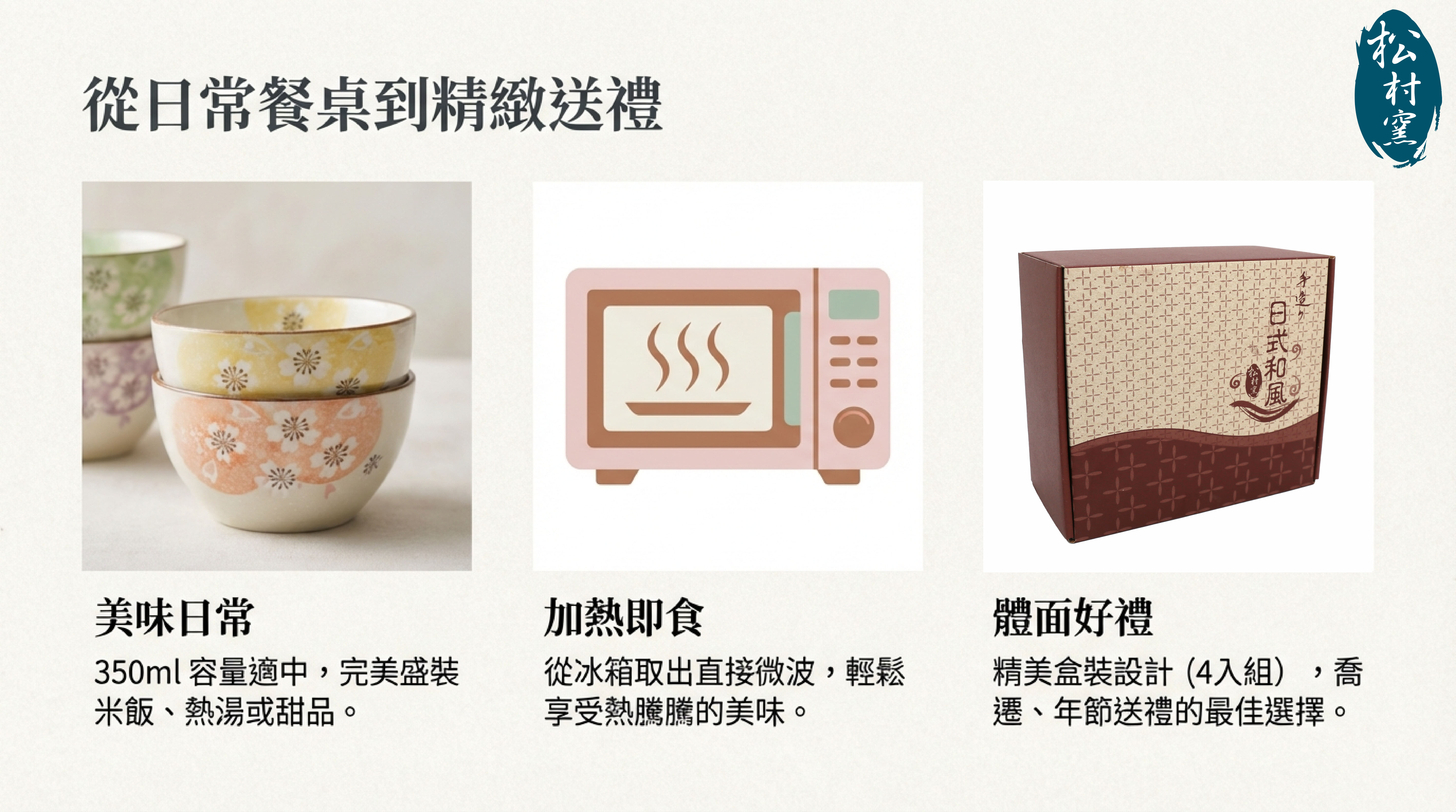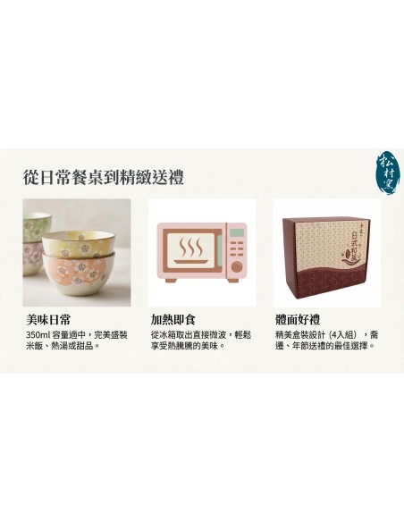 一.品 名:松村窯手造4.5吋方口櫻花碗4入 (盒裝)