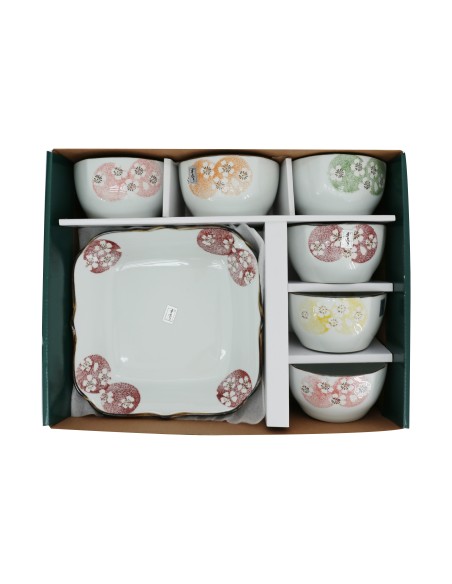 .品 名:松村窯手造4.5吋方口櫻花碗6+1荷口櫻花盤 (盒裝)