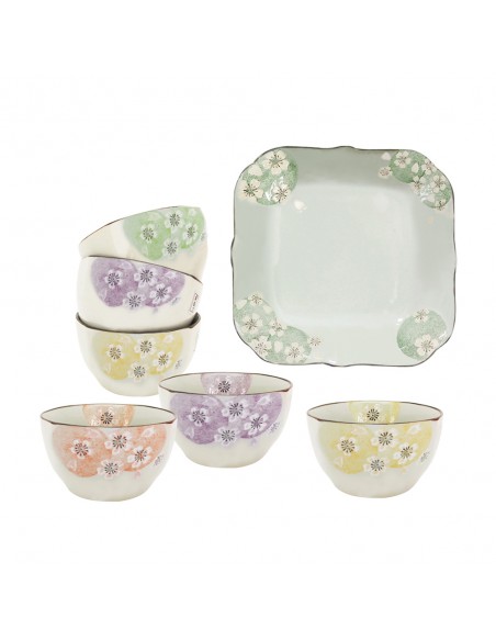 手造方口櫻花6碗+1荷口櫻花盤