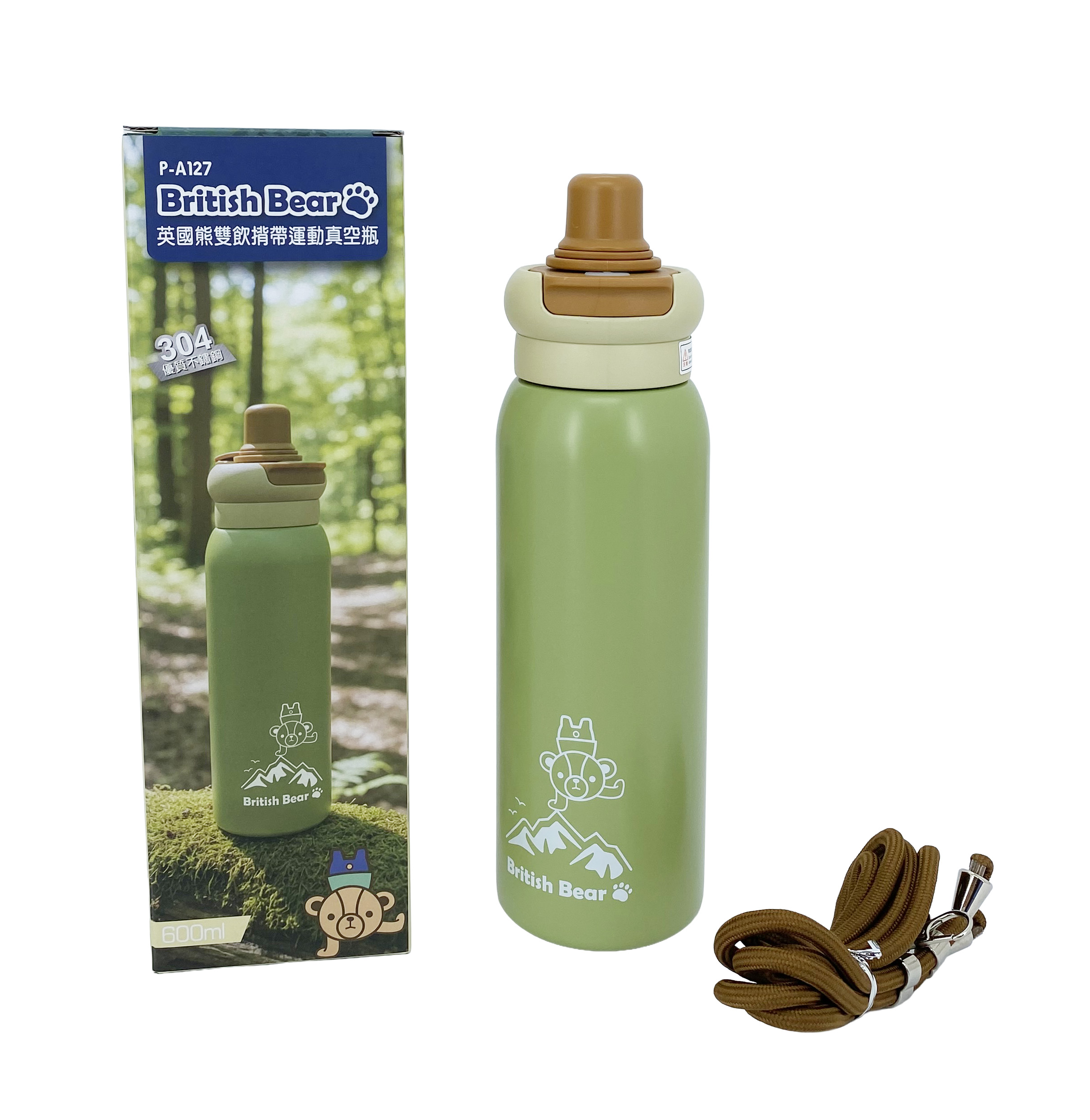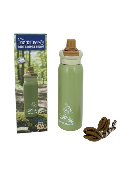 英國熊雙飲揹帶運動真空瓶-600ML