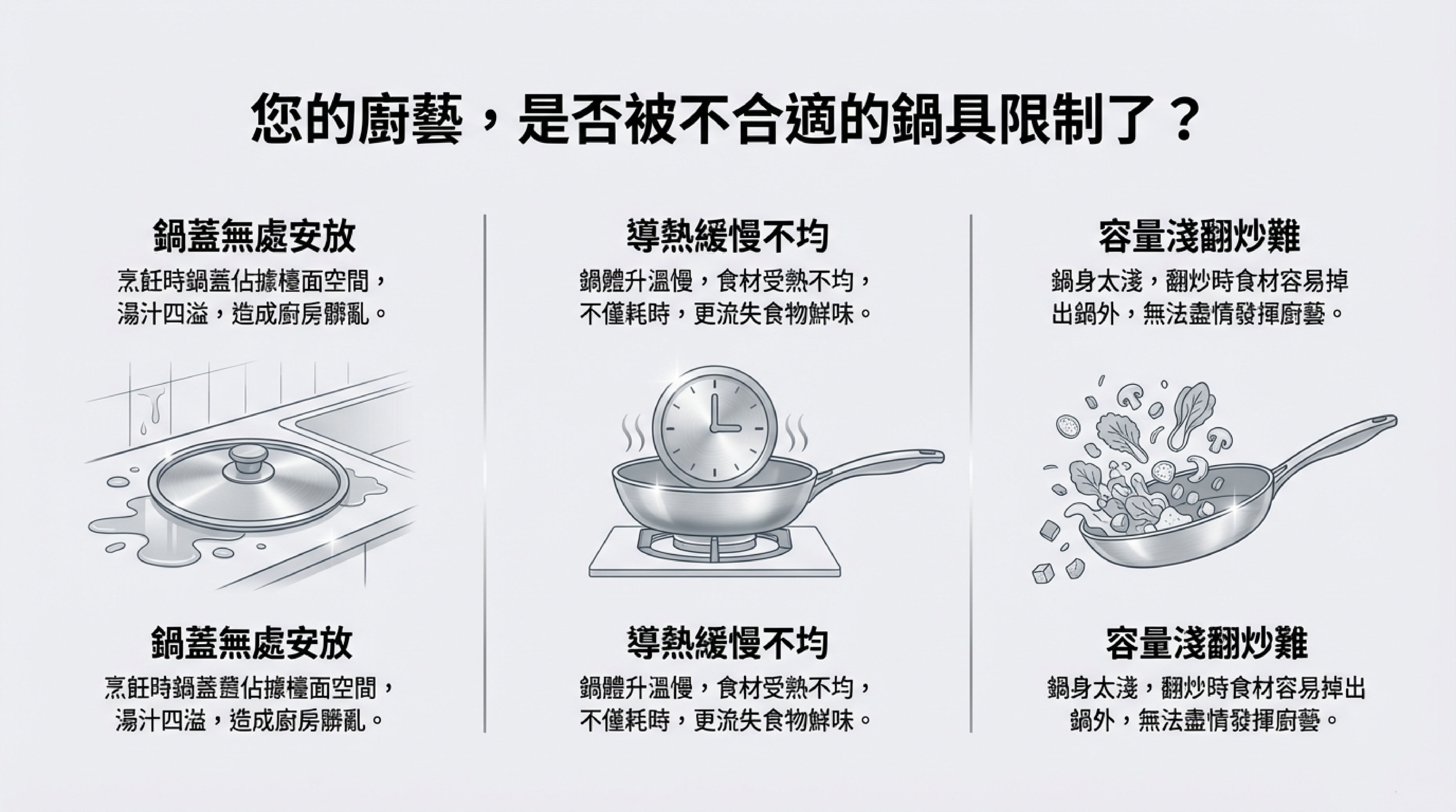 Ø鍋身導熱快速均勻,縮短烹飪時間