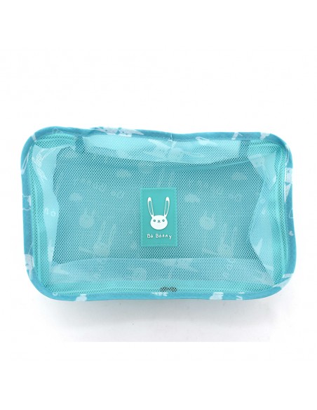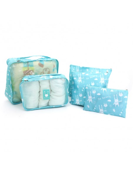 六.特色:一組有五種不同尺寸.大小物品分類收納一次解決,兩款網袋設計,所有物品收納一目了然。出差/旅遊行李收納好幫手,軟性布料,好收省空間.