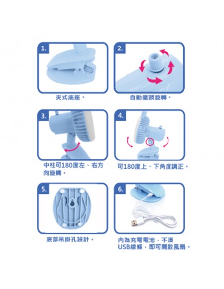 六.特色:安妮兔專利授權商品,可立於桌上或夾於桌邊、吊掛牆邊,三種使用方式可供選擇,堅固耐用.風扇面可調整各種送風角度(左右及仰角皆可),讓您愛吹那裡就吹那裡二段式調節風速按鈕設計,方便調整風量大小.夾具設置橡膠護墊,保戶夾面不易刮傷、不容易滑動.有附原廠USB充電線,LED光環,柔和LED光環補光燈,搭配霧面燈罩,給您自拍好氣色,適合嬰兒手推車.辦公室.露營.旅遊等.