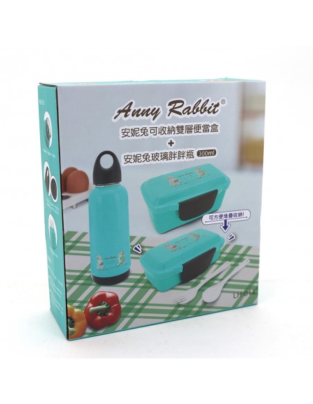 一.品名:安妮兔可收納雙層便當盒+300ml胖胖瓶 (盒裝)