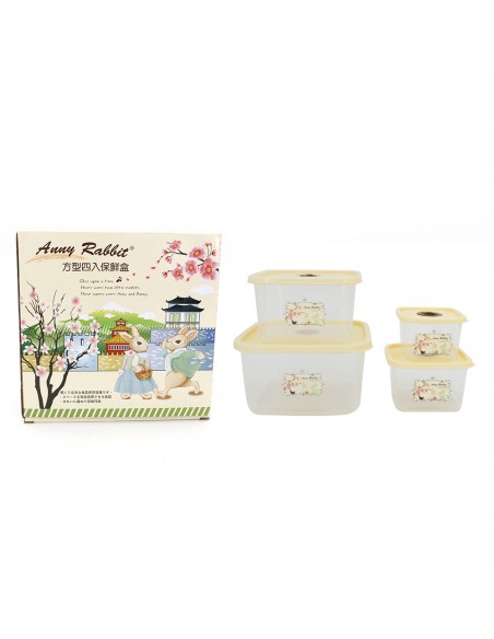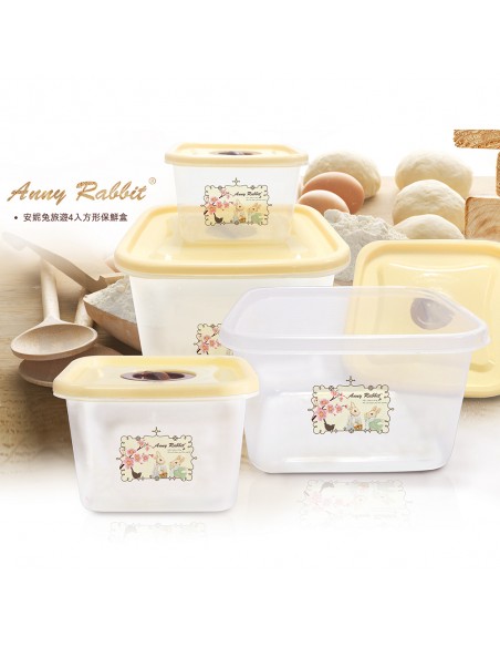 一.品名:安妮兔方形4入保鮮盒-櫻花 (盒裝)