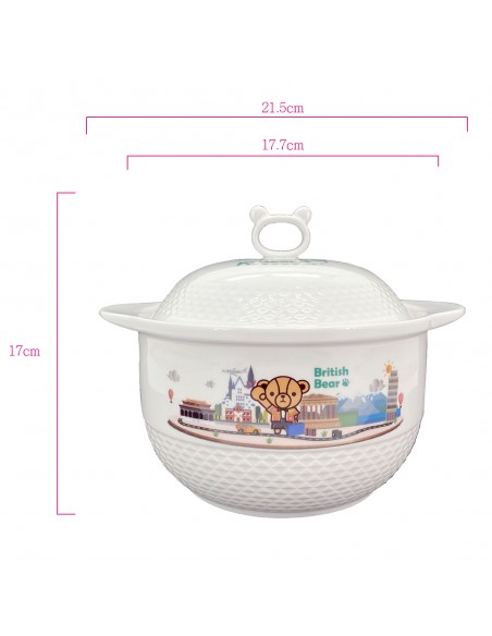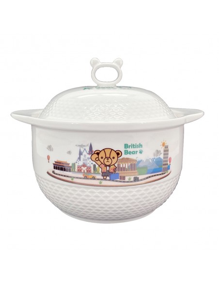 六.特色:英國熊專利授權圖案燒製商品,燉盅不可於直火加