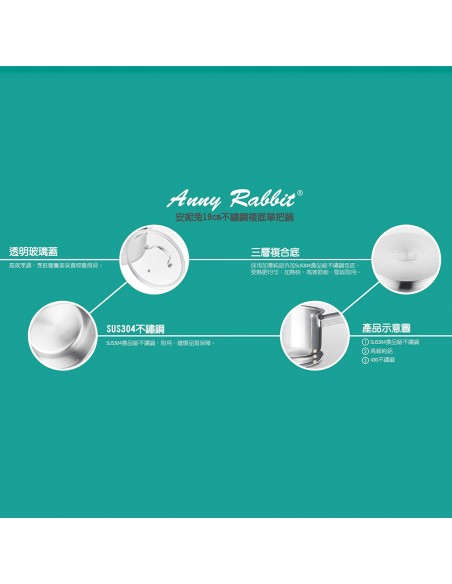 一.品名:安妮兔18CM不鏽鋼複底單把鍋(盒裝)